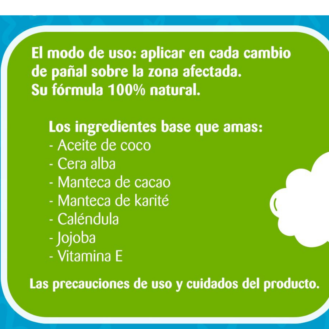 Pomada formulada con ingredientes naturales, mantecas vegetales súper nutritivas como el aceite de coco extravirgen orgánico, manteca de karité y manteca de cacao. Además de contar con aceites que combaten activamente las lesiones cutáneas tales como la caléndula, jojoba y el aceite esencial de lavanda.